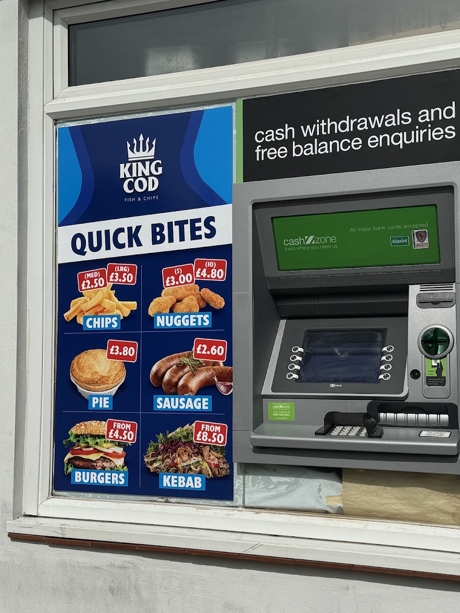 Customer reviews highlight the restaurant's commitment to clean, flavorful food, with one patron praising their 'wonderfully made' chips and fish fingers. Additionally, eco-conscious diners will appreciate King Cod's use of paper bags, reinforcing their dedication to sustainability. Located conveniently near Watford Junction, it's an ideal stop for travelers craving hearty, delicious meals. With a welcoming atmosphere and generous portions, King Cod promises an experience that will leave you wanting more.